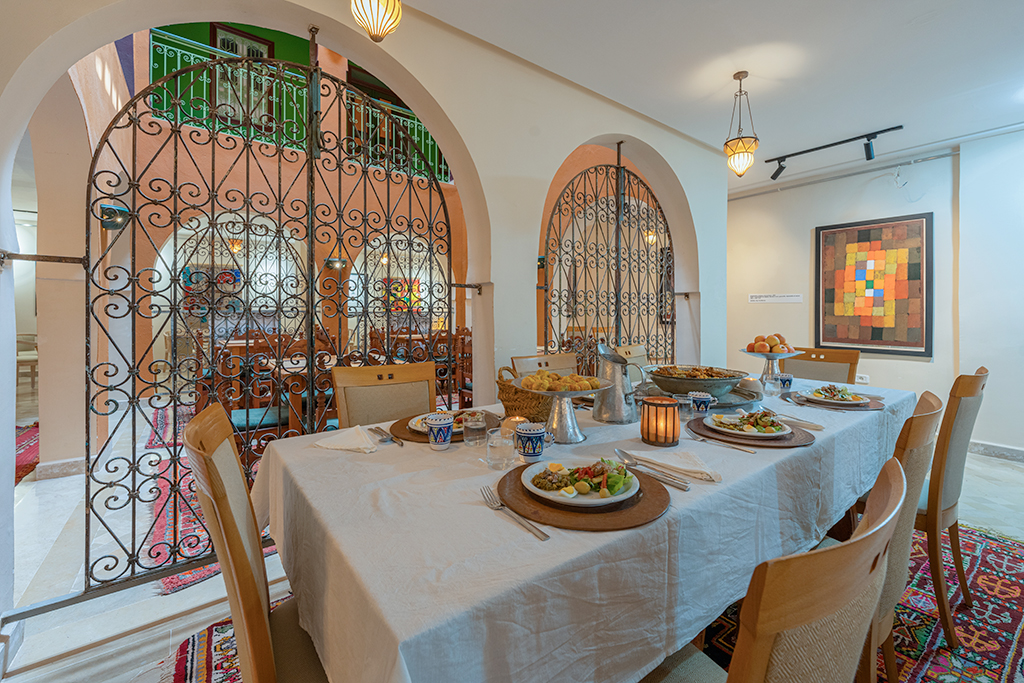 “Paul Klee n’était pas un orientaliste. Il ne regardait pas seulement l’extérieur. Il est allé voir l’âme”. Cette phrase guide tout son travail. Dar Dhiafa Paul Klee devient une maison qui respire le soufisme, la mémoire des marabouts, les textures du tissage et les silences ainsi que le calme de la médina.